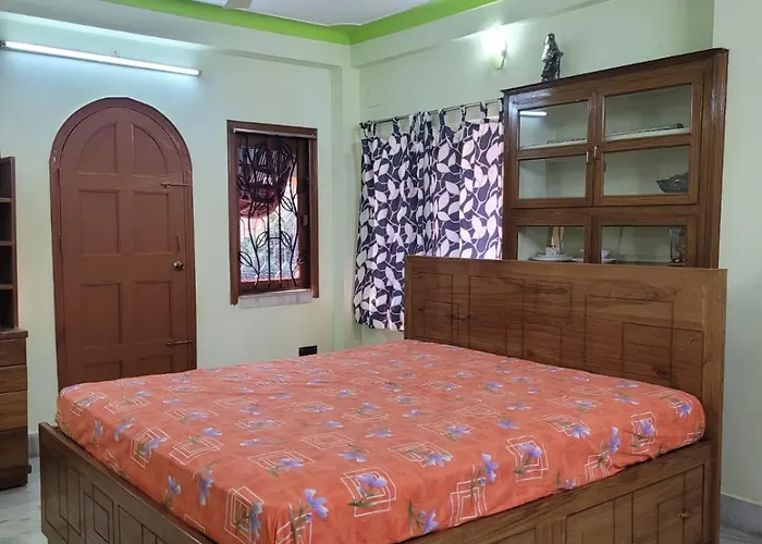In der 95 m² großen Ferienwohnung Flat 3, Kamala Bhavan finden Sie eine komplette Küche. Die nahe gelegene Hungree Restaurant und Cheenikum Restaurant Cum Bar sind in 9 Minuten zu Fuß zu erreichen. Die Bushaltestelle Bosepukur Shitalamandir liegt in der Nähe von diesem 1-Zimmer-Apartment.